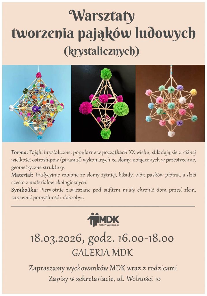 Serdecznie zapraszamy na Warsztaty tworzenia pająków ludowych. Szczegóły znajdziecie na plakacie 😉