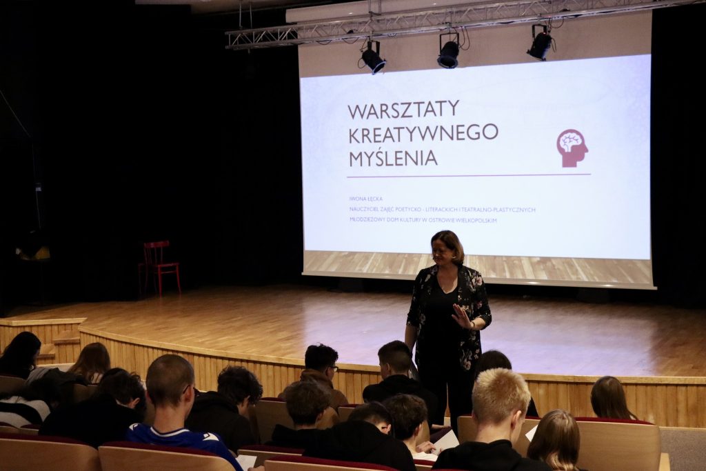 Kolejne ostrowskie szkoły średnie skorzystały z naszego zaproszenia na Warsztaty kreatywnego myślenia. 10 października mogliśmy gościć uczniów z III Liceum Ogólnokształcącego oraz z Zespołu Szkół Technicznych im. Waldemara Gostomczyka w Ostrowie Wielkopolskim. Warsztaty przeprowadziła Iwona Łęcka – nauczycielka zajęć poetycko-literackich.